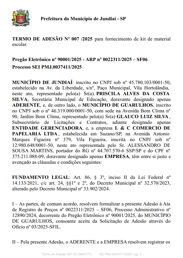 O contribuinte de Jundiaí acaba de descobrir que a eficiência da gestão pública local tem um preço, e ele é salgado. Uma análise detalhada da Adesão ARP nº 007/2025 e do posterior Termo de Aditamento nº 110/2025 revela um abismo entre o que a prefeitura paga e o que qualquer cidadão gastaria se fosse pessoalmente à papelaria. A conta é simples e dolorosa: o contrato assinado pela gestão do prefeito Gustavo Martinelli e pela secretária de Educação, Priscila Costa, custa R$ 5.761.421,19. Se os mesmos itens fossem adquiridos a preços de varejo, a fatura cairia para R$ 3.931.493,90.